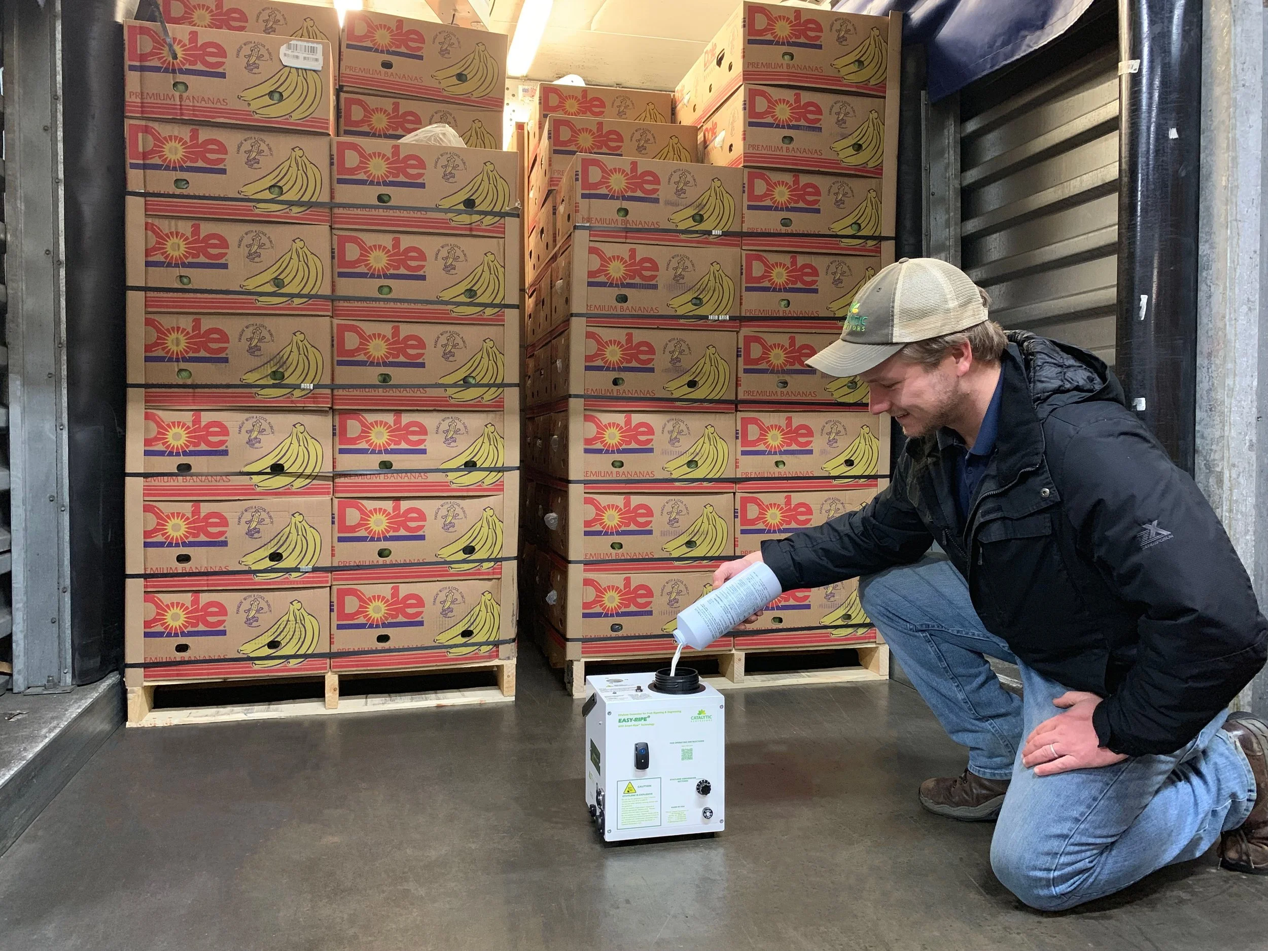 Contrairement aux fournisseurs de gaz multiples, Catalytic Generators s'appuie sur une promesse singulière : rendre l'application de l'éthylène facile, sûre et rentable. Les générateurs Easy-Ripe® de la société, alimentés par le concentré Ethy-Gen® II, sont conçus pour produire de l'éthylène de haute pureté sans utiliser de gaz inertes pour atténuer le risque de concentrations dangereuses. Notre système est intrinsèquement sûr et ne peut pas produire des niveaux d'éthylène explosifs", explique Greg Akins. "Il en résulte de meilleurs niveaux d'éthylène à moindre coût.